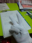 右手の人差し指は、ハンドクリーム塗ってラップして手袋!